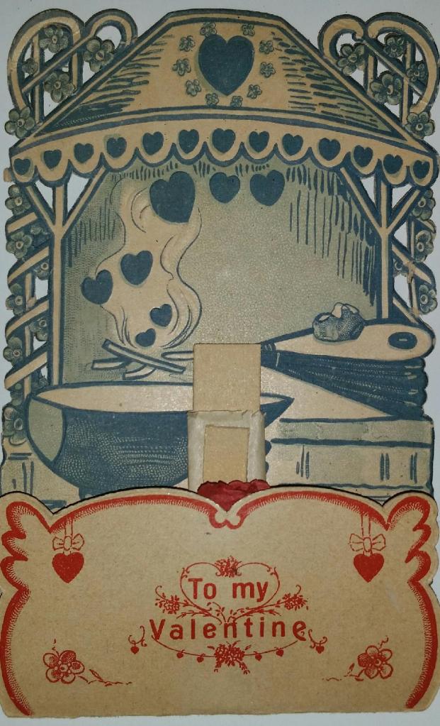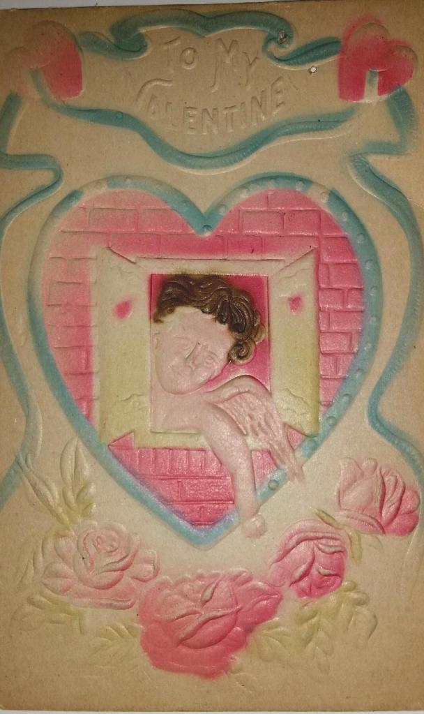 Over the years, there were times when I received either no Valentine’s Day gift or else received one that screamed “Yeah, I know I’m lame, but here I am anyway.” Little by little I came to regard Valentine’s Day as a celebration for others. So, as I was thinking about Valentine’s Day this year, I remembered that I still have in my possession a collection of vintage Valentine’s Day cards that were given to me almost 20 years ago. I suspect that I still have them because I like most things vintage, and then I remembered a painting I made in 2008.