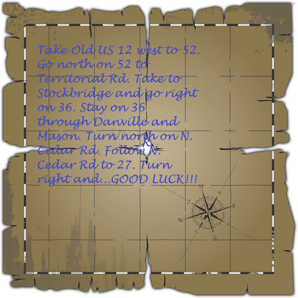 “Tell you what I’m going to do–I’m going to draw you a map,” Lisa told her. “It’s an alternate route to Lansing that bypasses US-23. You’ll make it home in less than an hour.”
