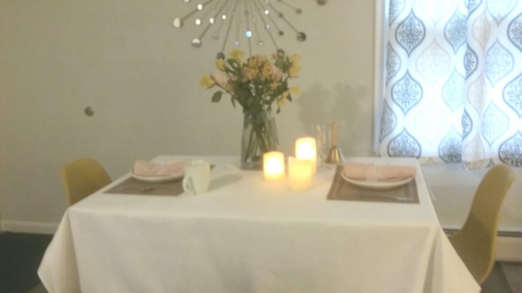 At my end, everything came off without a hitch. But how do I know it was a success? Both attendees proclaimed the dinner great (I removed empty salad bowls, and the spaghetti and garlic bread had disappeared from dinner plates–another clue), and I was graciously thanked. Afterward, they chilled out watching a movie (at a safe distance from each other, of course!), and I delayed the dessert a bit at their request so their meals could settle (I did buy the cheesecake, but I made a blueberry sauce from fresh blueberries and made whipped cream from scratch!).