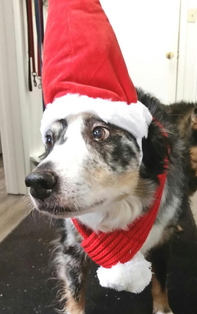 Yeah, you asked the others what kind of breed they were, so I thought I would tell you what I am. Except I really don’t know. When I was a pup someone said “German shepherd” and even “rottweiler.” When I was a little older, I heard talk of “Kelpie.” I don’t think my people know, but it doesn’t seem to bother them so I’m okay with it. Also, I didn’t mind the scarf but the hat was just too much!