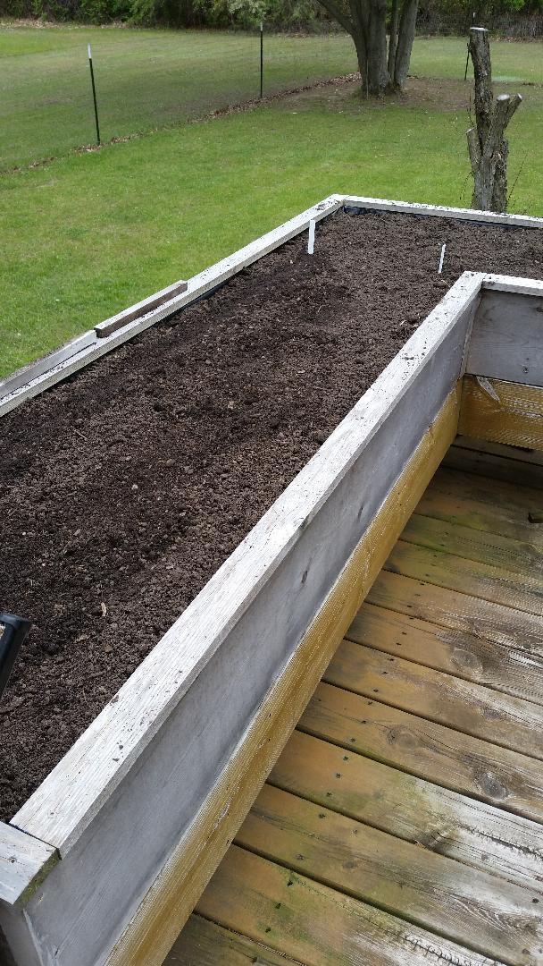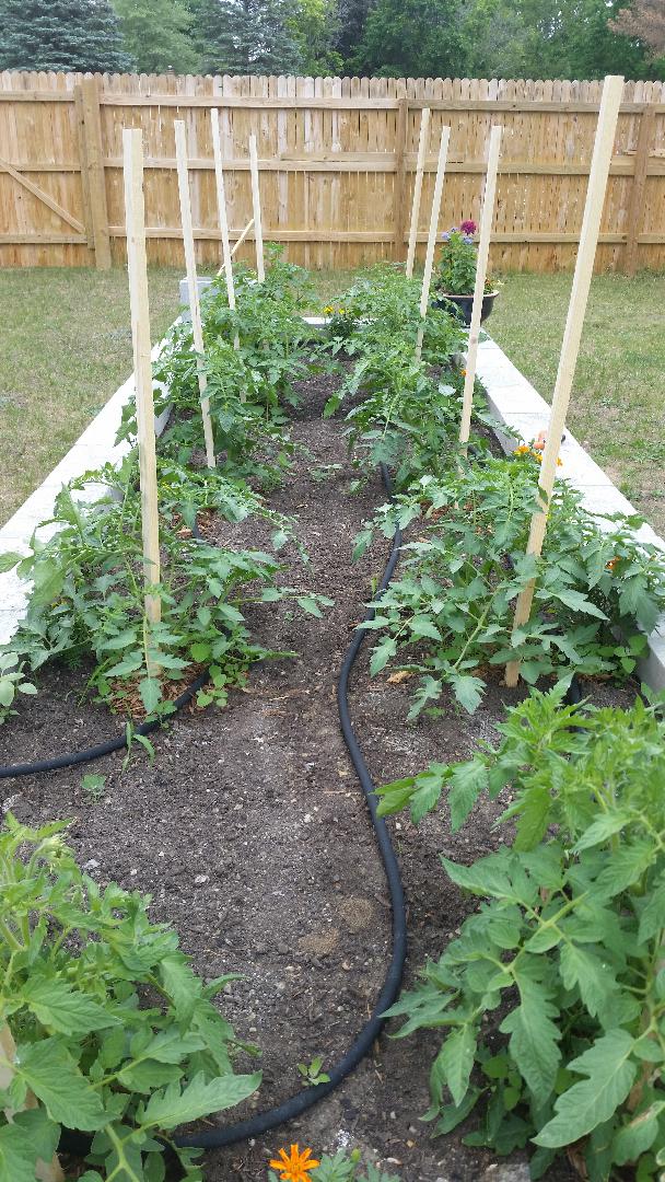 The tomatoes were in this raised bed last year. I planted 5 here and the rest are squash and cucumbers.