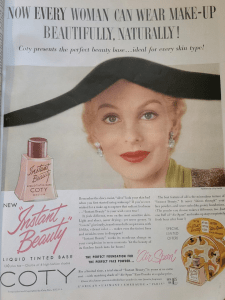 The last ad for this post is for Coty make-up. Miss Allen may have used this “Instant Beauty” liquid tinted base, and even Joonie would have appreciated the “Air Spun” face powder.